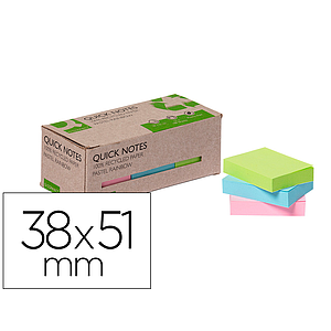 Q-CONNECT - BLOC DE NOTAS ADHESIVAS QUITA Y PON 38X51 MM 100% PAPEL RECICLADO COLORES PASTELES EN CAJA DE CARTON (Ref.KF17326)