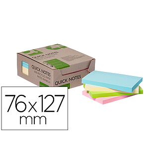 Q-CONNECT - BLOC DE NOTAS ADHESIVAS QUITA Y PON 76X127 MM 100% PAPEL RECICLADO COLORES PASTELES EN CAJA DE CARTON (Ref.KF17325)