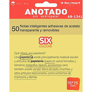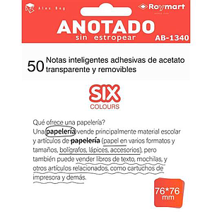 ROYMART - BLOC NOTAS ADHESIVAS INTELIGENTES REMOVIBLES TRANSPARENTES 50H 76X76MM ACETATO BLANCO (Ref.AB-1340)