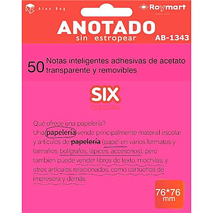 ROYMART - BLOC NOTAS ADHESIVAS INTELIGENTES REMOVIBLES TRANSPARENTES 50H 76X76MM ACETATO ROSA FLÚOR (Ref.AB-1343)