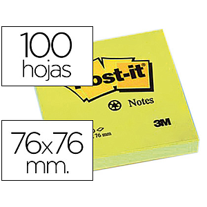 POST-IT - Notas adhesivas 100h Amarillo neon 76x76mm (Ref.FT510010174)