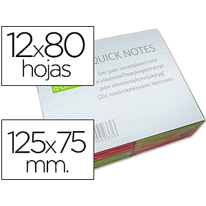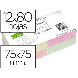 Q-CONNECT - BLOC DE NOTAS ADHESIVAS QUITA Y PON 125X75 MM CON 80 HOJAS FLUORESCENTES PACK DE 12 -SURTIDAS EN 4 COLORES (Ref.KF01350)