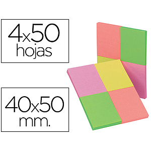 Q-CONNECT - BLOC DE NOTAS ADHESIVAS QUITA Y PON 40X50 MM CON 50 HOJAS FLUORESCENTES PACK DE 4 UNIDADES (Ref.KF10510)
