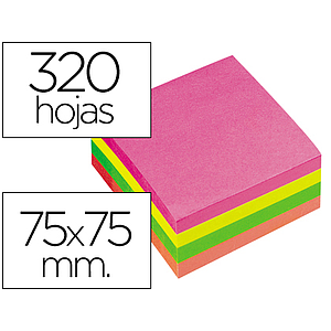 Q-CONNECT - BLOC DE NOTAS ADHESIVAS QUITA Y PON 75X75 MM FLUORESCENTE CON 320 HOJAS (Ref.KF01348)
