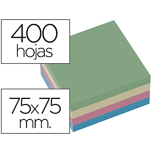 Q-CONNECT - BLOC DE NOTAS ADHESIVAS QUITA Y PON 75X75 MM PASTEL CON 400 HOJAS (Ref.KF01347)