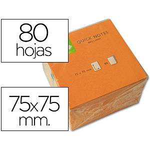 Q-CONNECT - BLOC DE NOTAS ADHESIVAS QUITA Y PON 75X75 MM NARANJA NEON 80 HOJAS (Ref.KF10517)