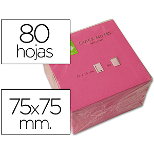 Q-CONNECT - BLOC DE NOTAS ADHESIVAS QUITA Y PON 75X75 MM ROSA NEON 80 HOJAS (Ref.KF10516)