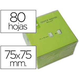 Q-CONNECT - BLOC DE NOTAS ADHESIVAS QUITA Y PON 75X75 MM VERDE NEON 80 HOJAS (Ref.KF10515)