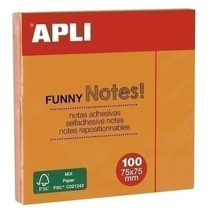 APLI - NOTAS ADHESIVAS FUNNY 75X75MM BLOC 100H NARANJA FLUORESCENTE -12U- (Ref.11900)