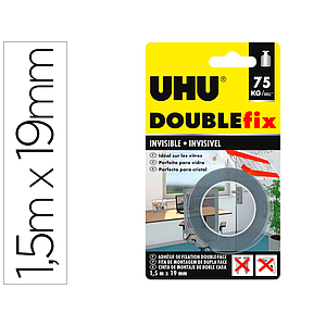 UHU - Cinta adhesiva doublefix invisible doble cara extra fuerte 1,5 mt x 19 mm (Ref. 44868)