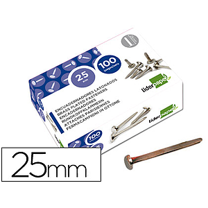 LIDERPAPEL - ENCUADERNADORES 25 MM CON ARANDELA -LATONADOS -CAJA DE 100 (Ref.FS05)