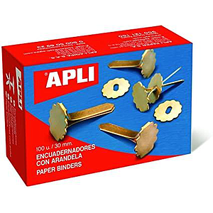 APLI - ENCUADERNADOR latonado Nº6 (30 mm) con ARANDELA CAJA de 100 (Ref.12286)