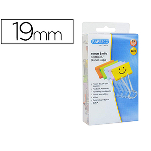 RAPESCO - Pinza metalica reversible 19 mm sonrisas colores surtidos cajita de 80 unidades (Ref. 1428)