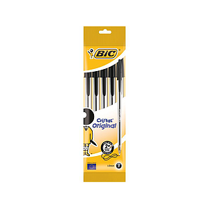 BIC - Bolsa 5 bolígrafos Cristal negros. Trazo 0,4mm. (Ref.802051)