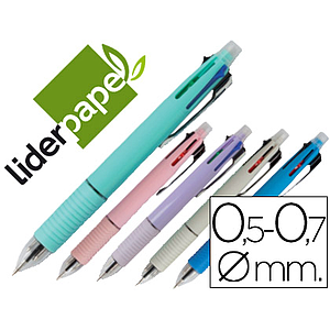 LIDERPAPEL - BOLIGRAFO 5 EN 1 AZUL NEGRO ROJO VERDE 0,7M Y PORTAMINAS 0,5MM (Ref.BW01)