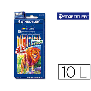 STAEDTLER - LAPICES DE COLORES NORIS CLUB JUMBO Triangular CAJA DE 10 COLORES TRIPLUS + Sacapuntas/Afilalapices (Ref.128 NC 10)