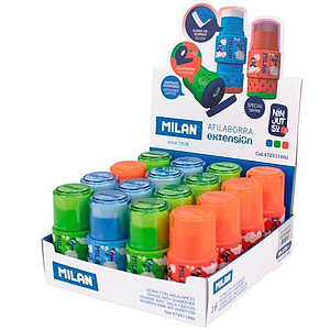 MILAN - Sacapuntas/Afilalapices DOBLE EXTENSIÓN DEPÓSITO EXTENSIBLE 3 COLORES EXPOSITOR -12U- (Ref.20162212)