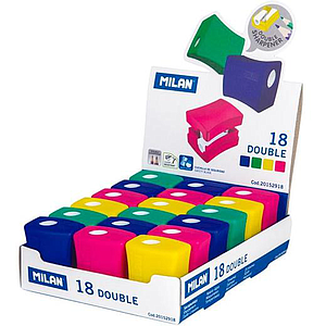 MILAN - Sacapuntas/Afilalapices DOUBLE 1 USO CON DEPOSITO SURTIDO EXPOSITOR de 18 (Ref.20152918)