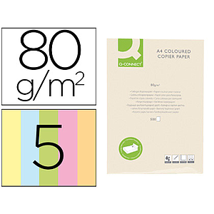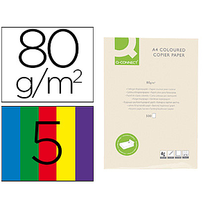 Q-CONNECT - PAPEL COLOR DIN A4 80 GR 5 COLORES SURTIDOS PAQUETE DE 500 HOJAS (Ref.KF02242)