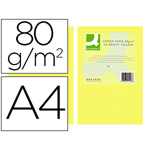 Q-CONNECT - PAPEL COLOR DIN A4 80GR AMARILLO NEON PAQUETE DE 500 HOJAS (Ref.KF16266)