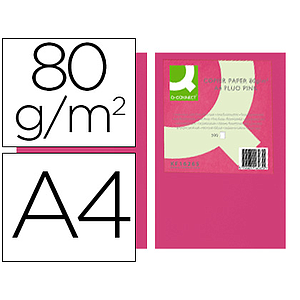 Q-CONNECT - PAPEL COLOR DIN A4 80GR ROSA NEON PAQUETE DE 500 HOJAS (Ref.KF16265)