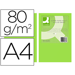 Q-CONNECT - PAPEL COLOR DIN A4 80GR VERDE NEON PAQUETE DE 500 HOJAS (Ref.KF16267)