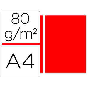 LIDERPAPEL - PAPEL COLOR A4 80G/M2 ROJO PAQUETE DE 100 (Ref.PC58)