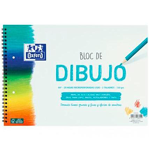 OXFORD - BLOC PARA DIBUJO ESCOLAR MULTITALADRO 2 T/ BLANDA ESPIRAL 20H 130GR A4+ C/ RECUADRO LISO BLANCO (Ref.400148236)