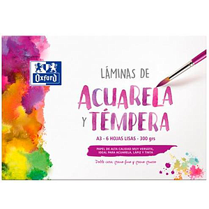 OXFORD - LÁMINAS PARA PINTURA ACUARELA Y TÉMPERA 6H 300GR A3 LISO BLANCO (Ref.400151295)