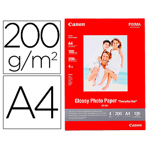 CANON - Papel foto A4 brillante 200gr/m2 paquete 100 hojas (Ref. 0775B001)