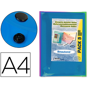 LIDERPAPEL - CARPETA DOSSIER BROCHE TRANSPARENTE DIN A4 COLORES SURTIDOS PAQUETE DE 5 RETRACTILADO (Ref.DS51)