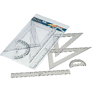 LIDERPAPEL - JUEGO ESCUADRA Y CARTABON 25CM REGLA 30CM Y SEMICIRCULO 15CM EN PETACA INCOLORA (Ref.JG02)