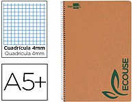 LIDERPAPEL - CUADERNO ESPIRAL CUARTO ECOUSE TAPA CARTULINA KRAFT 80H PAPEL RECICLADO 60 GR CUADRO 4MM (Ref.BB03)