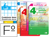 LIDERPAPEL - CUADERNO ESPIRAL FOLIO PAUTAGUIA TAPA BLANDA 80H 80 GR CUADRO PAUTADO 4MM COLORES SURTIDOS (Ref.BF54)
