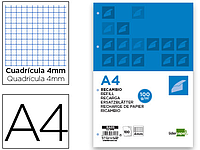 LIDERPAPEL - RECAMBIO A4 100 HOJAS 100G/M2 CUADRO 4MM CON MARGEN 4 TALADROS (Ref.RA05)