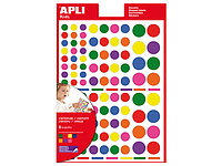 APLI - Bolsa 6 HOJAS DE GOMETS (624U.) ADHESIVO REMOVIBLE 160x217MM. TAMAÑOS Y COLORES SURTIDOS (Ref.12970)