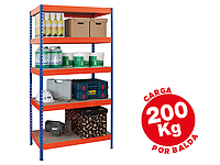 AR STORAGE - ESTANTERIA METALICA 180X90X45 CM 5 ESTANTES 200KG POR ESTANTE BANDEJAS DE MADERASIN TORNILLOS AZUL NARANJA (Ref.STABIL 90/45)