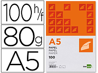 LIDERPAPEL - PAPEL A5 80G/M2 PAQUETE DE 100 BLANCO (Ref.PB01)