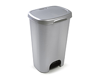 PLASTICFORTE - Papelera contenedor plastico con tapadera y pedal 50 litros color plata 410x360x635 mm (Ref. 1214512)