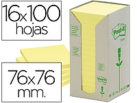 POST-IT - Torre notas adhesivas 16 blocs 100h Amarillo 76x76mm Reciclado (Ref.FT510110347)