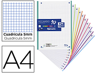 ANTARTIK - RECAMBIO LIDERPAPEL A4 100 HOJAS 100G/M2 CUADRO 5 MM 4 TALADROS BANDAS DE 5 COLORES (Ref.RX01)