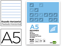 LIDERPAPEL - RECAMBIO A5 100 HOJAS 100G/M2 HORIZONTAL CON MARGEN 6 TALADROS (Ref.RB02)