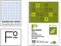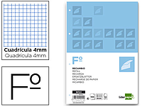 LIDERPAPEL - RECAMBIO FOLIO 100 HOJAS 60G/M2CUADRO 4MM CON MARGEN 4 TALADROS (Ref.RF01)
