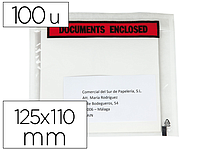 Q-CONNECT - Sobre autoadhesivo portadocumentos multilingue 125x110 mm sin ventana paquete de 100 unidades (Ref. KF11298)