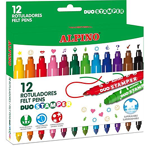 ALPINO - ESTUCHE 12 ROTULADORES DUO STAMPER C/PUNTAS QUE ESTAMPAN DIBUJOS C/SURTIDOS (Ref.AR001059)