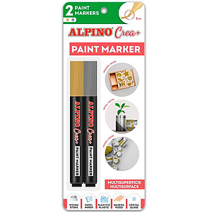 ALPINO - PACK 2 ROTULADORES CREA + PAINT MARKER PARA DECORACIÓN TODAS SUPERFICIES ORO/PLATA (Ref.AR000252)
