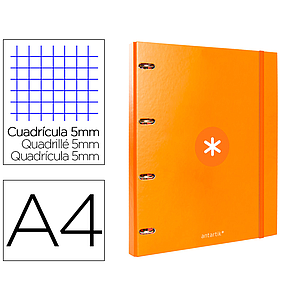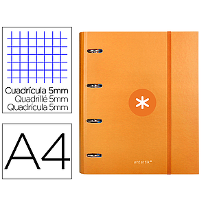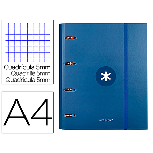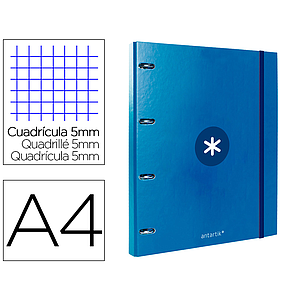 ANTARTIK - CARPETA CON RECAMBIO Y SOLAPA LIDERPAPEL A4 CUADRO 5 MM FORRADA 4 ANILLAS REDONDAS 40MM COLOR AZUL (Ref.AW98)