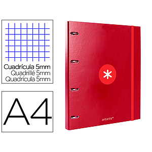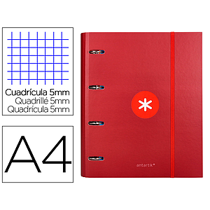 ANTARTIK - CARPETA CON RECAMBIO Y SOLAPA LIDERPAPEL A4 CUADRO 5 MM FORRADA 4 ANILLAS REDONDAS 40MM COLOR FRAMBUESA (Ref.AW90)