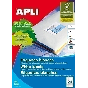 APLI - ETIQUETAS ADH.IMPR. A4 BLANCA C.RECTOS CAJA 100h 70x36 mm 2.400 uds.(0) (Ref.1298)