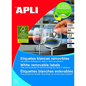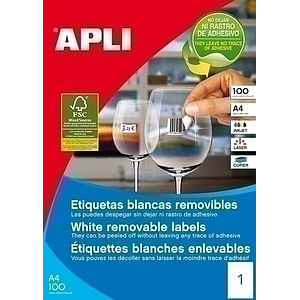 APLI - ETIQUETAS ADH.IMPR. A4 BLANCA C.RECTOS REMOVIBLE CAJA 100h 210x297 mm 100 uds.(0) (Ref.3060)